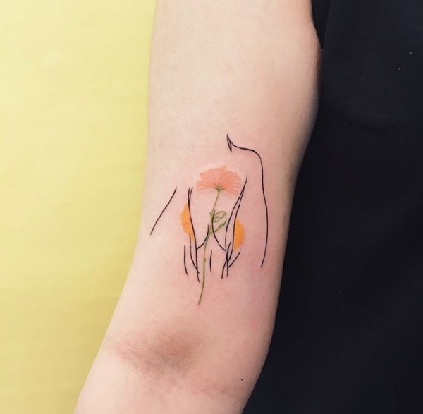 小清新风格的线条和奇妙配色纹身图案作品18张
