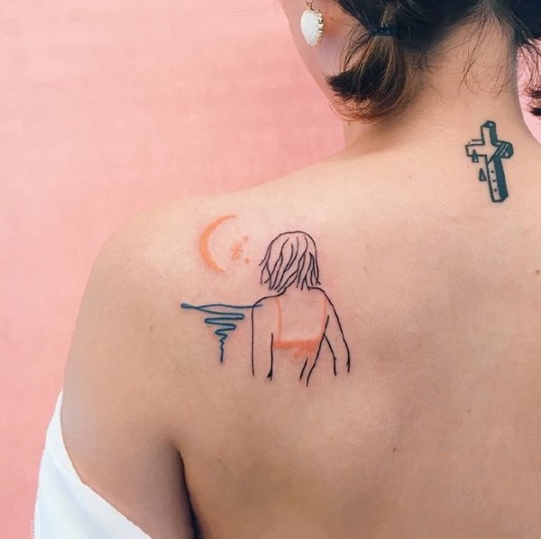 小清新风格的线条和奇妙配色纹身图案作品18张