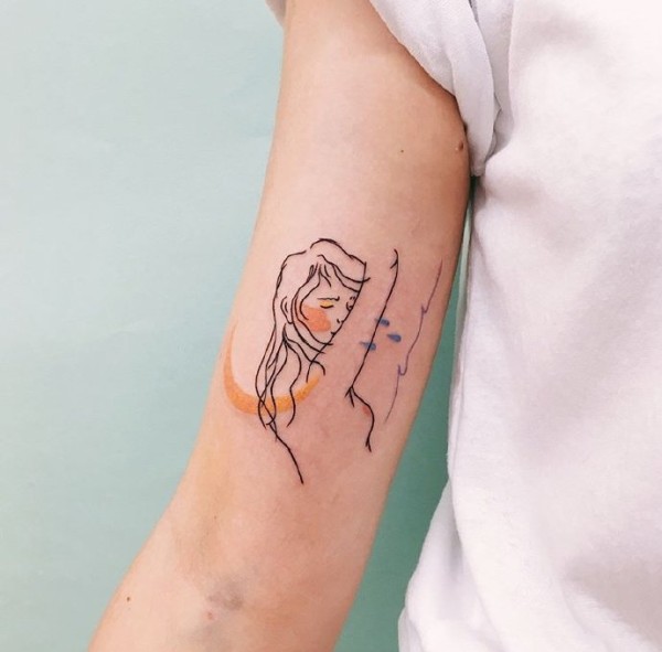 小清新风格的线条和奇妙配色纹身图案作品18张