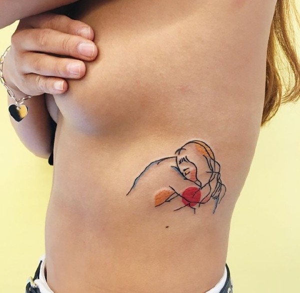 小清新风格的线条和奇妙配色纹身图案作品18张