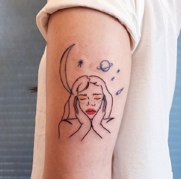 小清新风格的线条和奇妙配色纹身图案作品18张