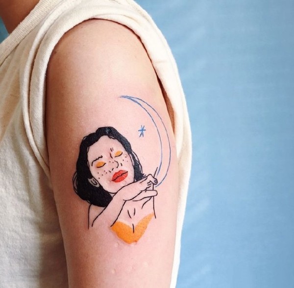 小清新风格的线条和奇妙配色纹身图案作品18张