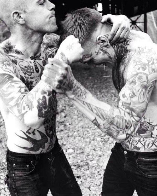 可以当头像和壁纸的两个国外黑白欧美纹身帅哥图片