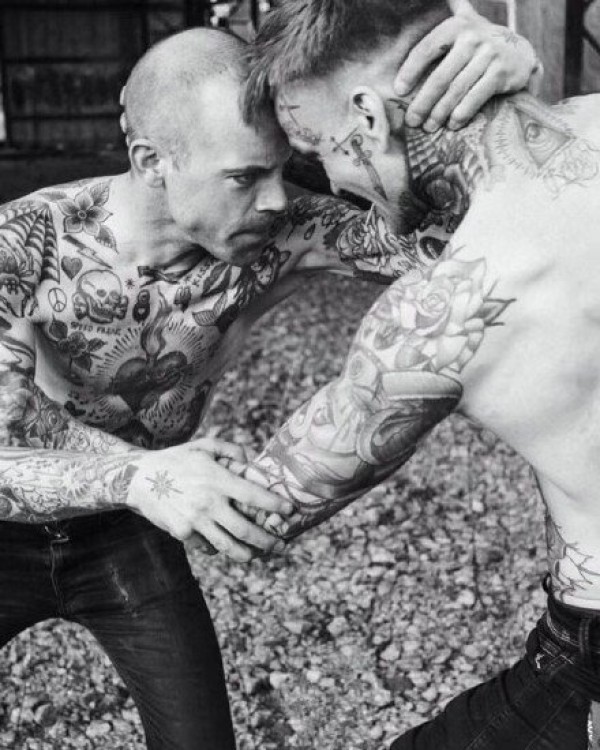 可以当头像和壁纸的两个国外黑白欧美纹身帅哥图片