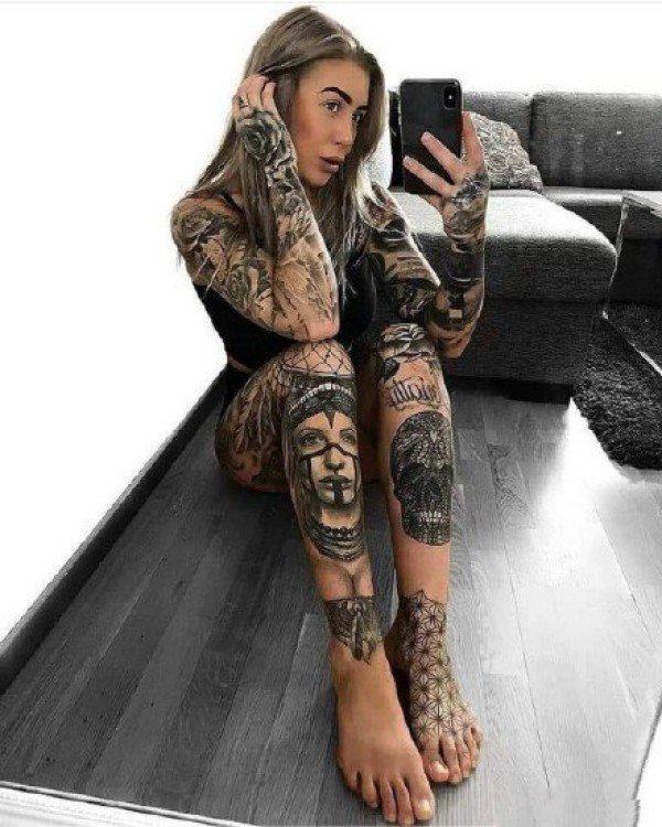 性感纹身美女--拥有大面积黑灰纹身的性感纹身美女图片
