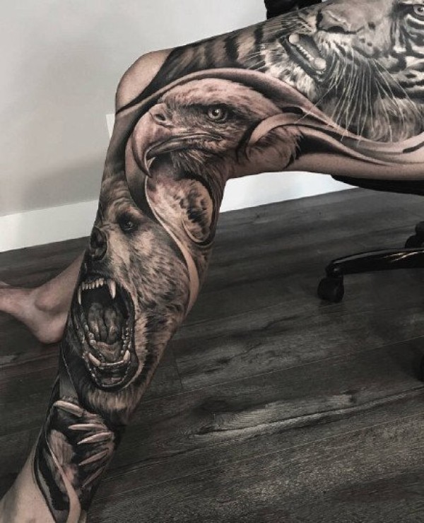 传统风格的霸气大花腿纹身作品欣赏