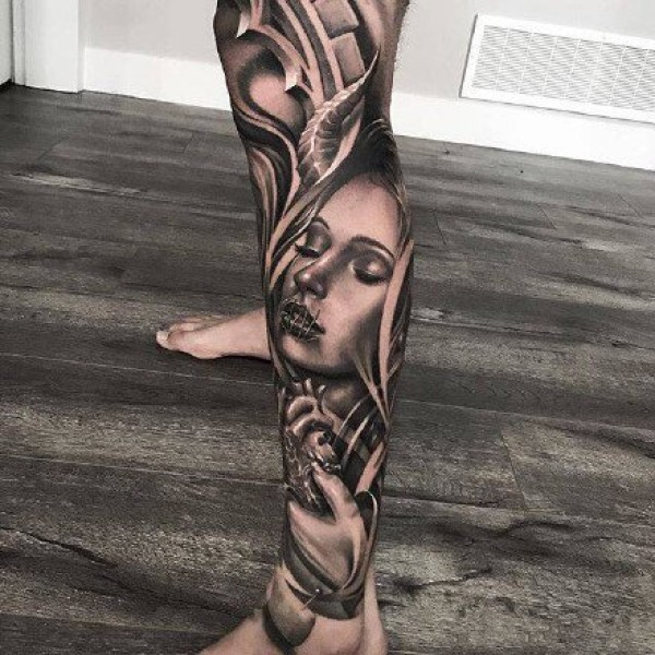 花腿纹身--一组大黑腿纹身图案作品欣赏