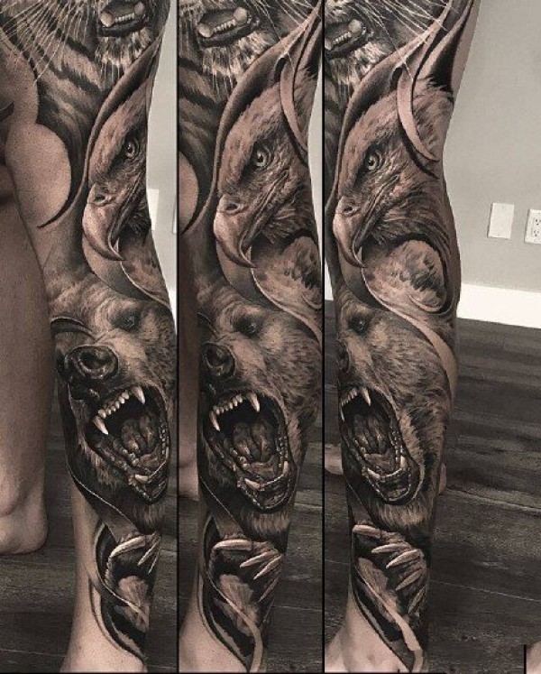 花腿纹身--一组大黑腿纹身图案作品欣赏