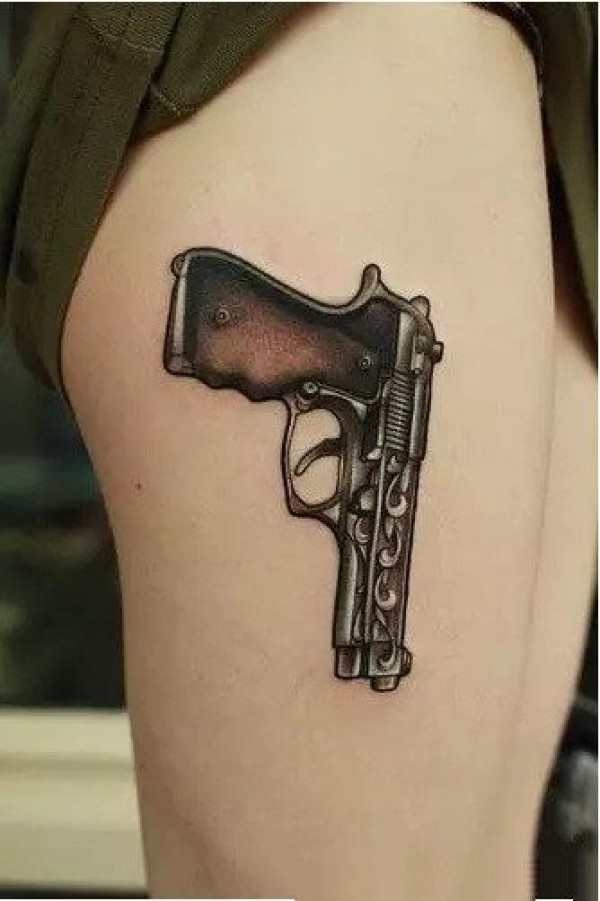 小手枪纹身 小黑色的9张手枪纹身图案欣赏