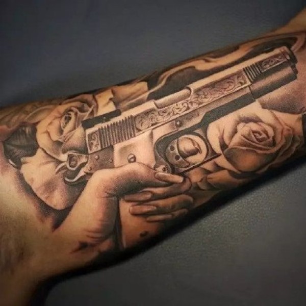 小手枪纹身 小黑色的9张手枪纹身图案欣赏