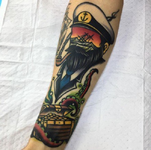 纹身艺术家Sam Kane的原创彩色鲨鱼等动物纹身图