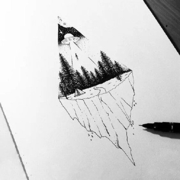 多款黑色线条素描创意有趣宇宙飞碟纹身图案
