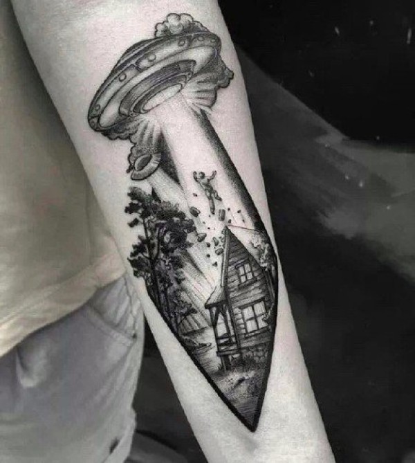 飞碟纹身图案 男生手臂上月亮和飞碟纹身图片
