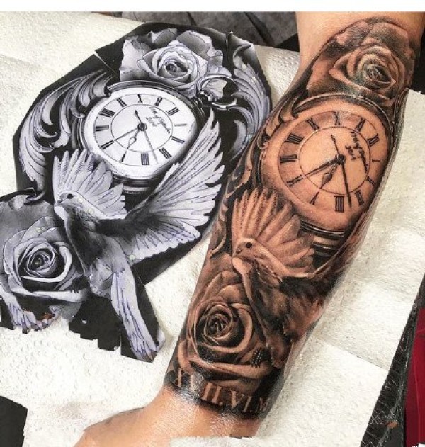 小臂钟表纹身 18款欧美风格包臂钟表纹身图案