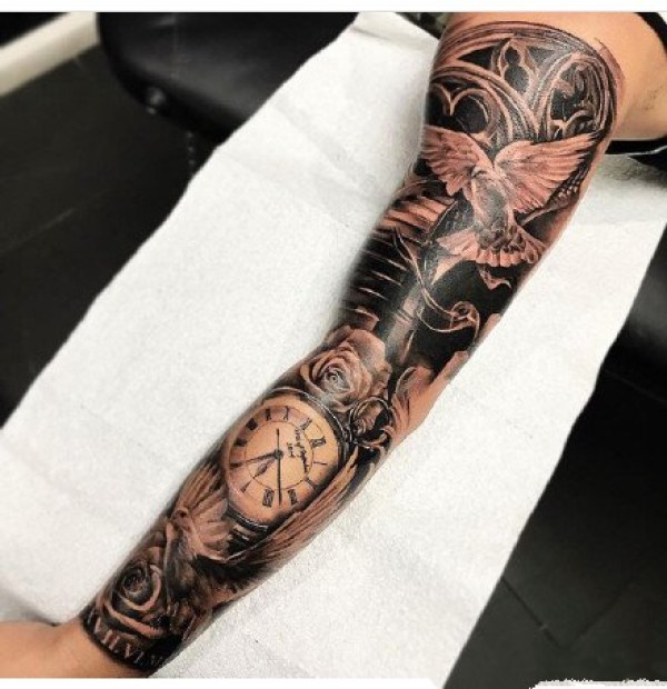 小臂钟表纹身 18款欧美风格包臂钟表纹身图案