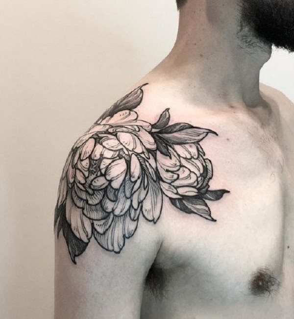 肩花纹身--一组适合肩部的黑灰肩花纹身图案欣赏