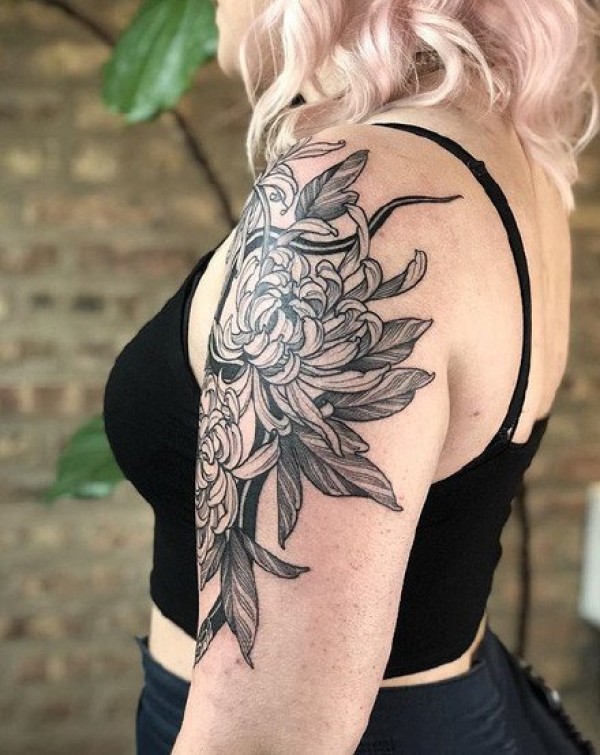 肩花纹身--一组适合肩部的黑灰肩花纹身图案欣赏