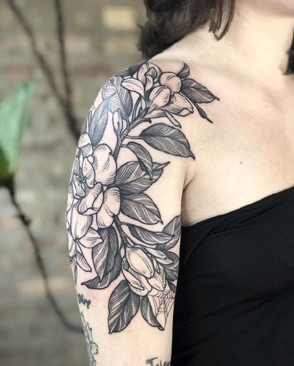 肩花纹身--一组适合肩部的黑灰肩花纹身图案欣赏