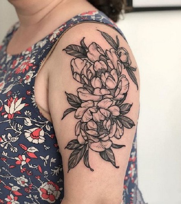 肩花纹身--一组适合肩部的黑灰肩花纹身图案欣赏