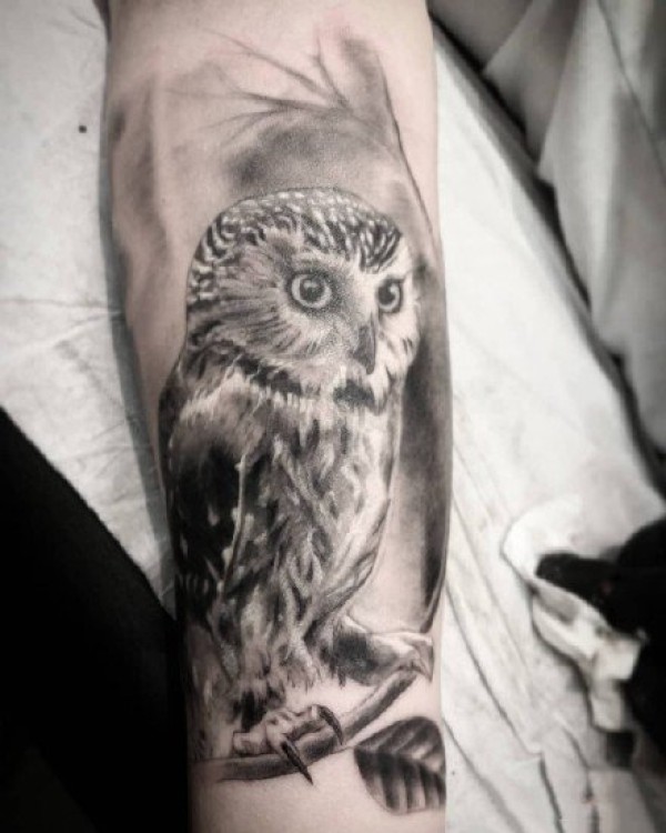 胳膊一张创意猫头鹰文身作品