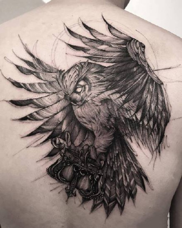 鹰纹身--一组彩色的猫头鹰等鹰纹身作品欣赏