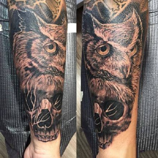 鹰纹身--一组彩色的猫头鹰等鹰纹身作品欣赏