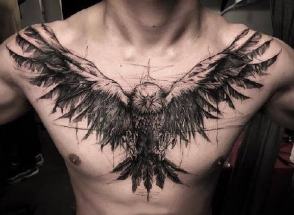 胸口上一款漂亮的老鹰纹身作品图片