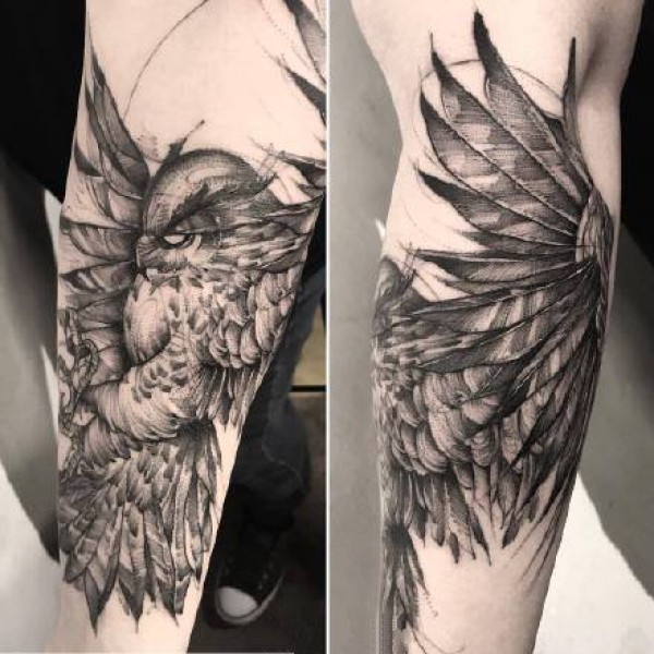 雄鹰刺青--9张黑灰线条的老鹰纹身作品图片欣赏