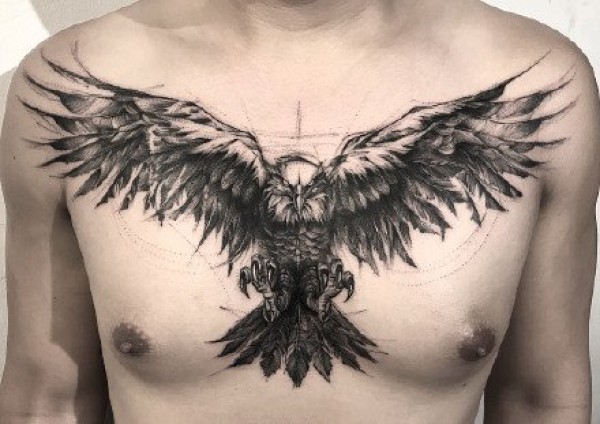 胸口上一款漂亮的老鹰纹身作品图片