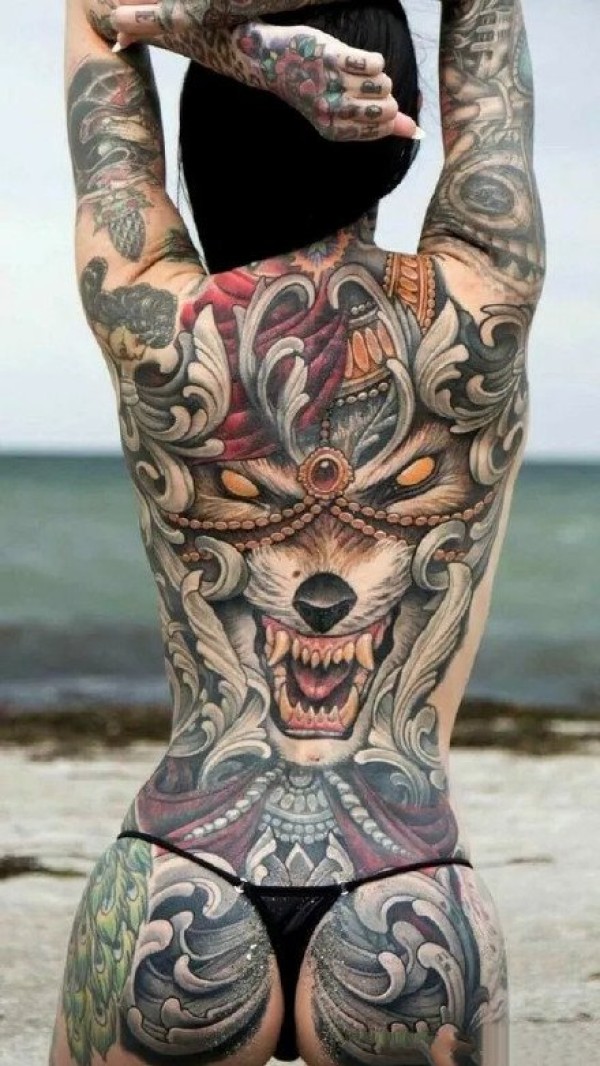 女性大满背纹身--9张女生霸气的大满背纹身作品图案欣赏