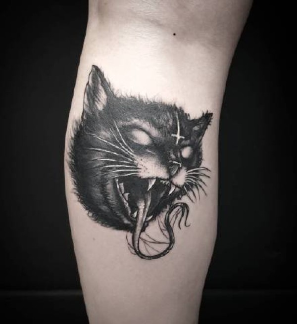 暗黑猫纹身--9张暗黑风格的猫猫纹身图案