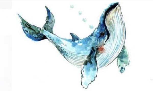 9张漂亮的水彩色鲸鱼纹身图案作品