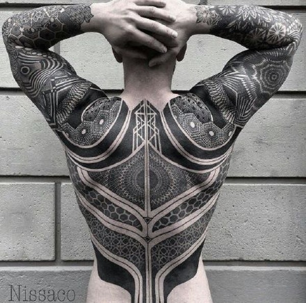 纯黑色的点刺梵花图腾等黑色纹身图案欣赏