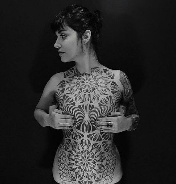 纯黑色的点刺梵花图腾等黑色纹身图案欣赏
