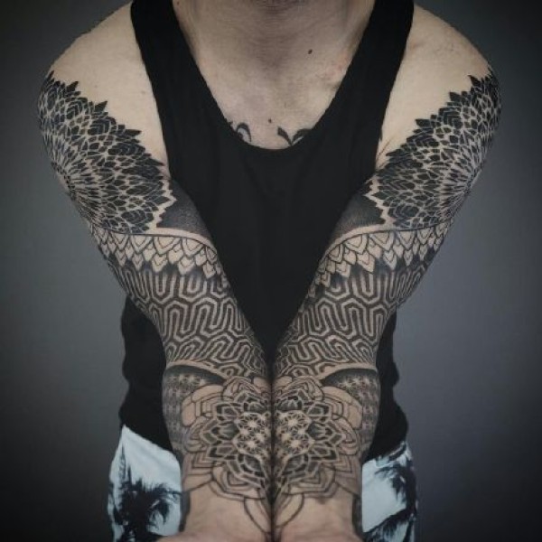 纯黑色的点刺梵花图腾等黑色纹身图案欣赏