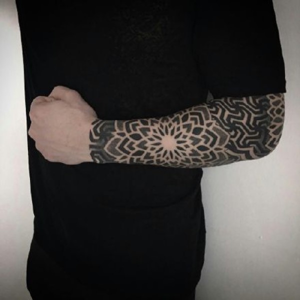 纯黑色的点刺梵花图腾等黑色纹身图案欣赏