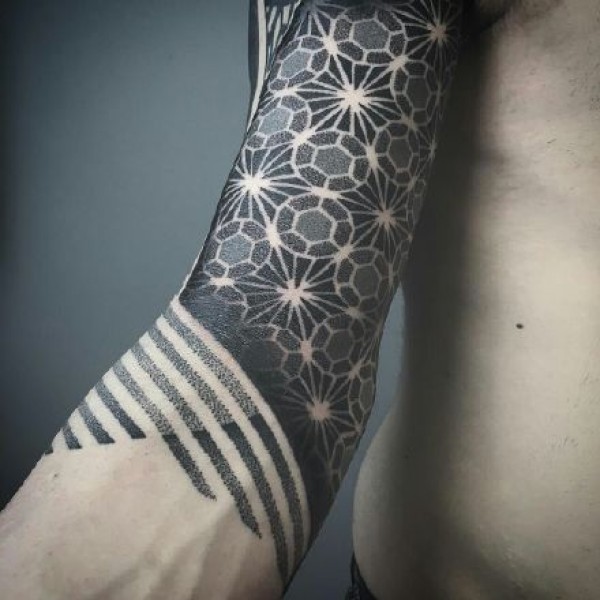 25款男性黑色手臂线条纹身点刺技巧半甲纹身图案