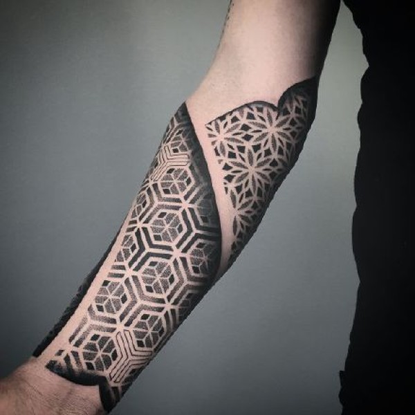 纯黑色的点刺梵花图腾等黑色纹身图案欣赏