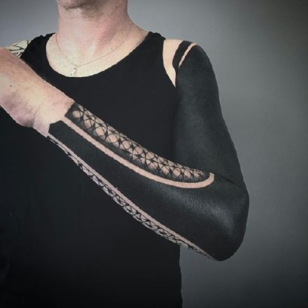 25款男性黑色手臂线条纹身点刺技巧半甲纹身图案