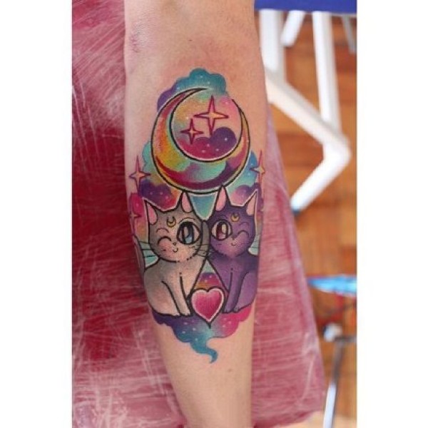 可爱卡通小猫咪纹身--猫露娜与亚提密斯的卡通纹身图案
