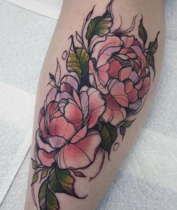 线条感不错的手臂腿部的花朵纹身图案