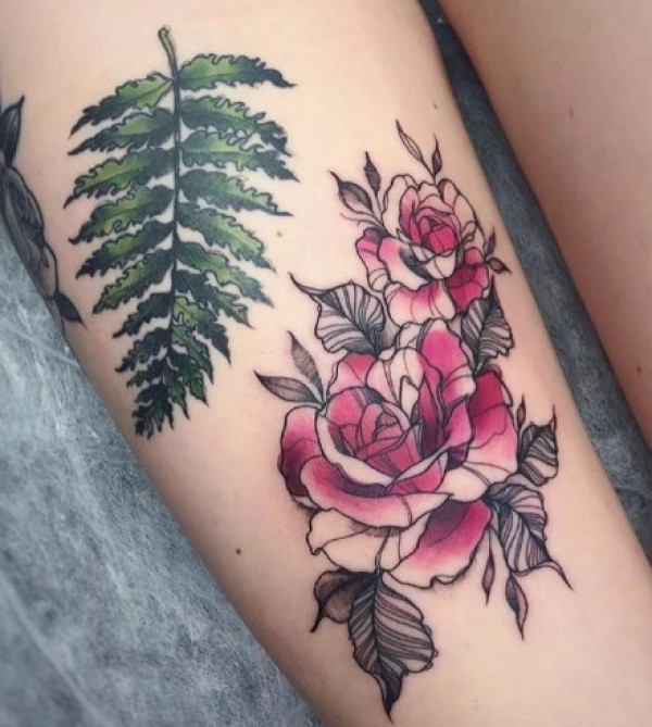 欧美玫瑰纹身 男生手臂上花朵纹身图片