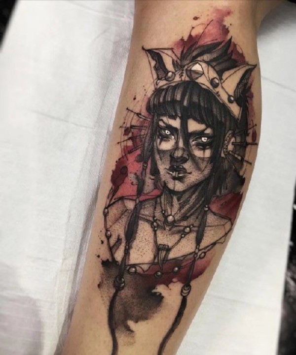 一组别致的暗黑带色彩的个性纹身图案欣赏