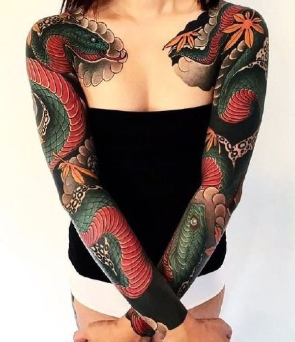 传统风格花臂--17张传统风格的大花臂纹身图案