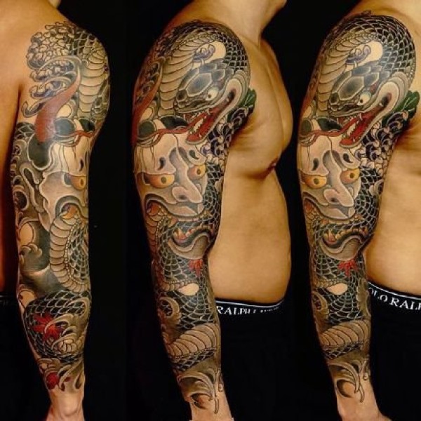 传统风格花臂--17张传统风格的大花臂纹身图案