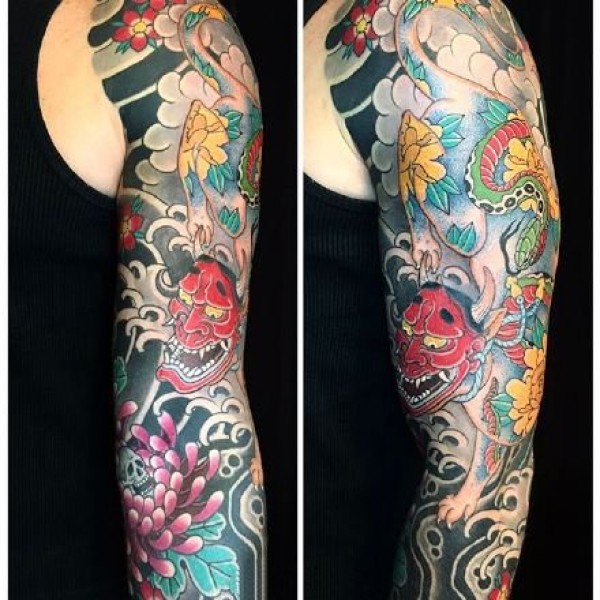 传统风格花臂--17张传统风格的大花臂纹身图案