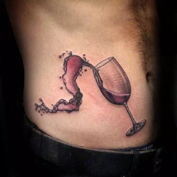 脚踝彩色泼墨酒杯藤蔓纹身图案