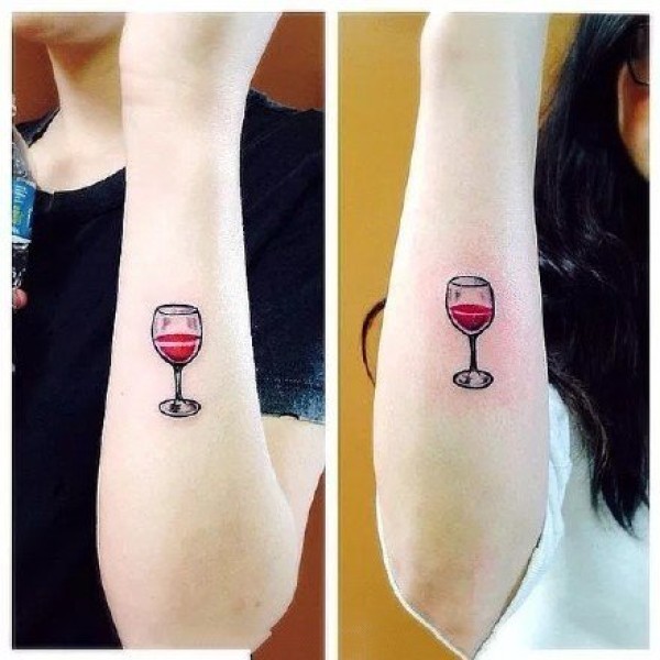 脚踝彩色泼墨酒杯藤蔓纹身图案