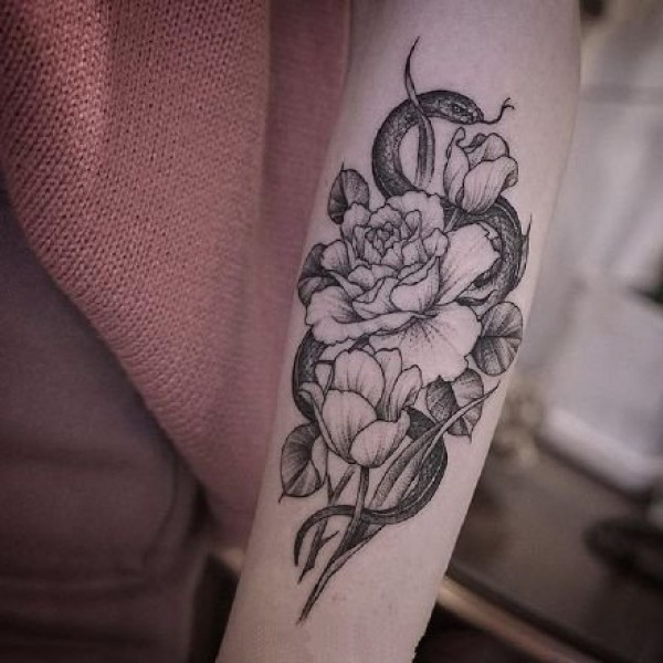 心脏纹身图案 女生手臂上黑灰纹身心脏纹身图案