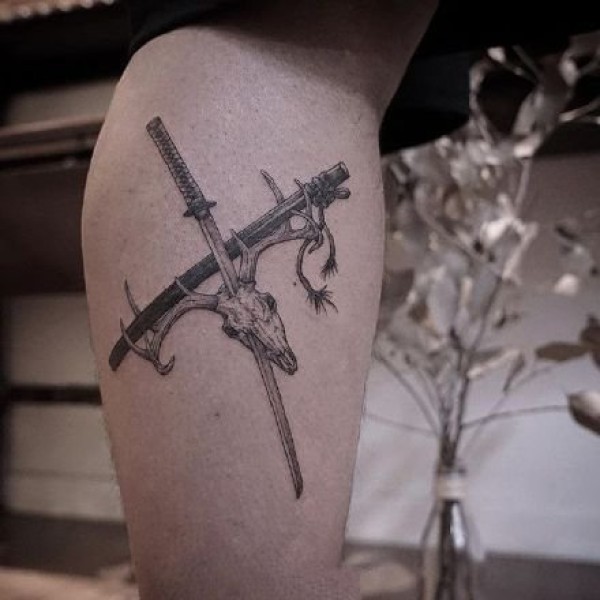 花腿纹身--一组大黑腿纹身图案作品欣赏